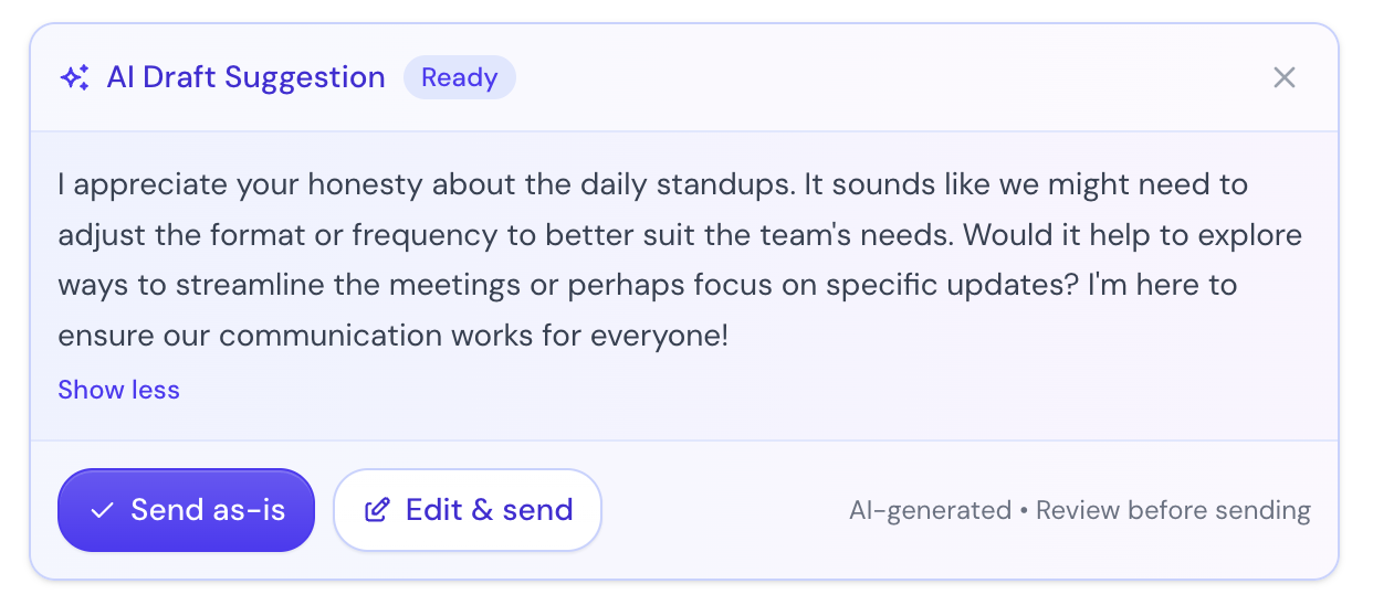 Get a draft reply to the feedback, so you can quickly respond to the employee.